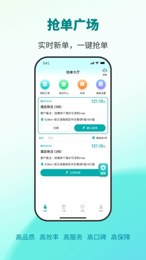 软件为用户提供了线上的抢单大厅,实时的新单都可以一键抢单。
