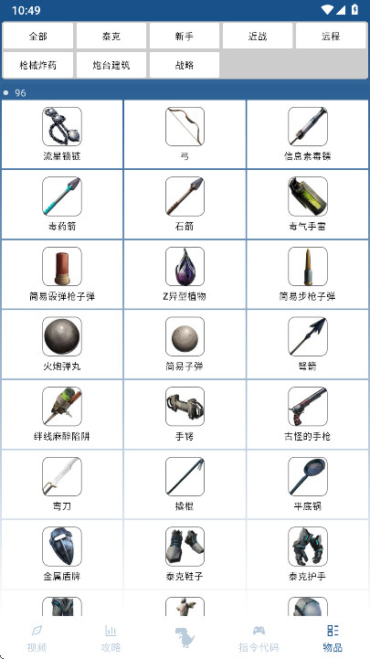 5、在物品页面中,大量物品可进行查看,并为你提供解锁条件、制作方法、制作材料等;