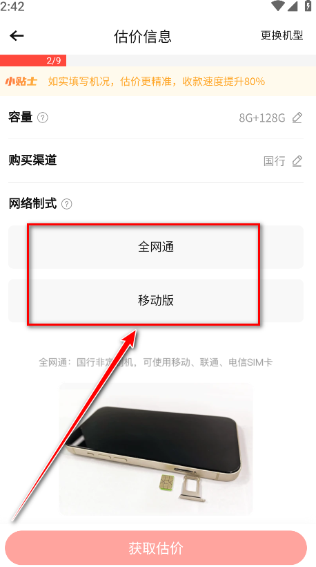 8.选择网络制式。
