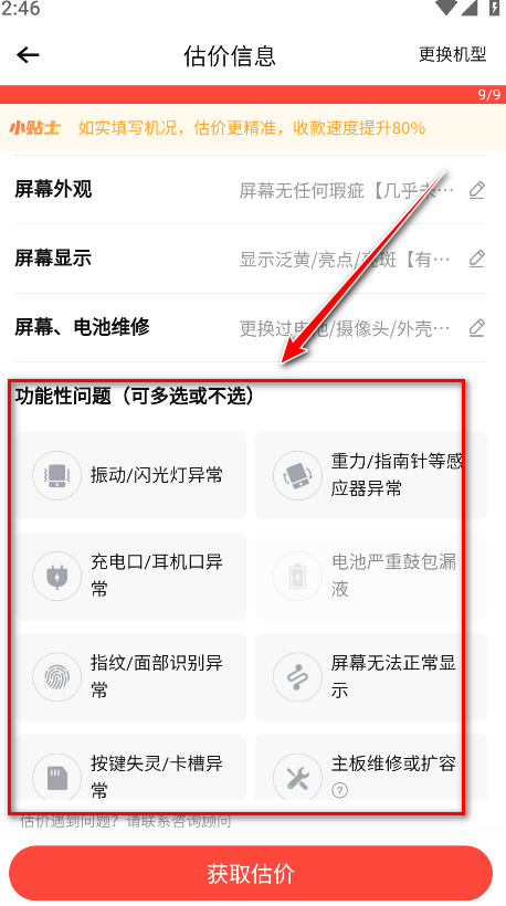 15.点击获取估价。