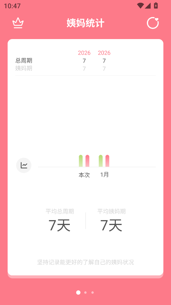 姨妈来咯是一款细致入微的女性生理周期管理工具,通过智能科技为每位用户提供体贴周到的健康陪伴。它借助精巧的圆盘视图完整呈现周期进展,让整体状况一目了然。软件内嵌的日历查询功能方便用户回溯过往经期并预览未来预测,帮助把握个人生理规律。一键快速记录功能简化了操作步骤,让开始和结束日期的标记变得轻松即时。