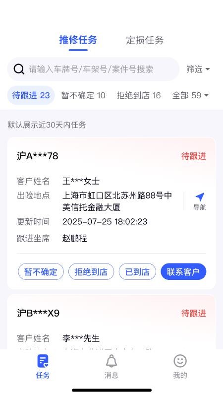 这里还可以对车辆的定损任务进行查看,就可实现线上查勘定损,一键定损。