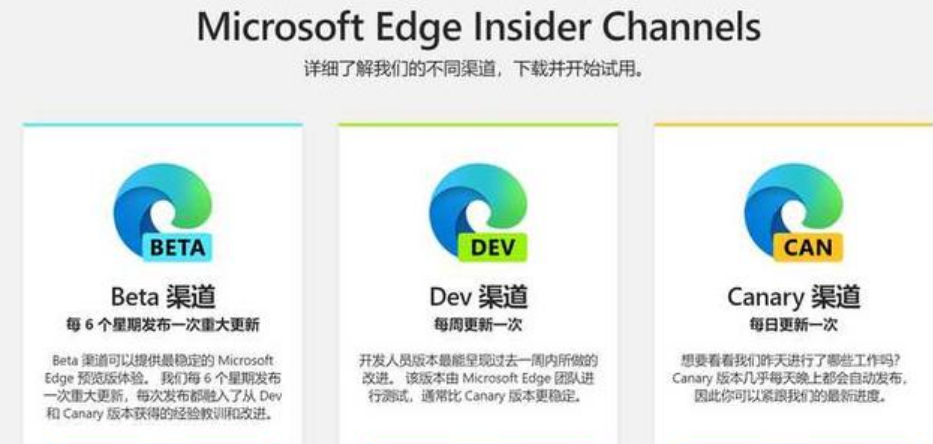 Microsoft Edge有四个渠道版本,分别为Stable、Beta、Dev、Canary,每个版本对应不同开发阶段,对应功能侧重点也大不相同