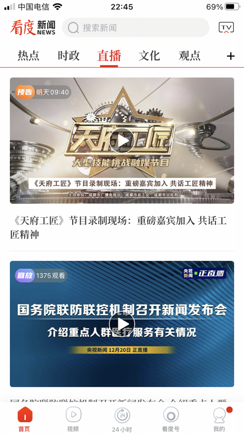 看度新闻app下载安装是一款全国新型主流视听新媒体平台,提供国内本土热点事件视频直播、提供问政、问答、社群等互动服务,成为千万市民“一手掌握”的公共服务传播平台。