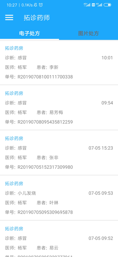 拓诊药师APP主要功能:药剂师注册,电子签名,平台审核,药剂师登录查看电子处方和纸质处方照片,判定审核结果,审核确认时需要药剂师人脸认证。所有处方审核都有药剂师审核痕迹,数据全程可追溯,系统自动统计药剂师本人审核的处方数目。