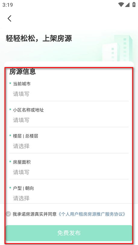 3.请仔细填写房源信息,再点击免费发布即可。