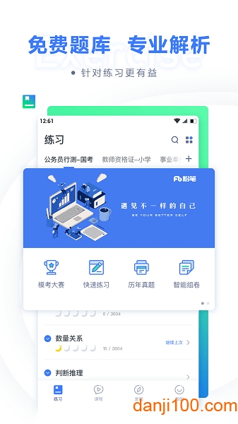 粉笔教育app中具各个地方的仿真命题,并且都是高质量的习题,在软件中知道自己的学习中的优缺点,并且还有各个不同的仿真考试,各大名师讲堂,你值得拥有。