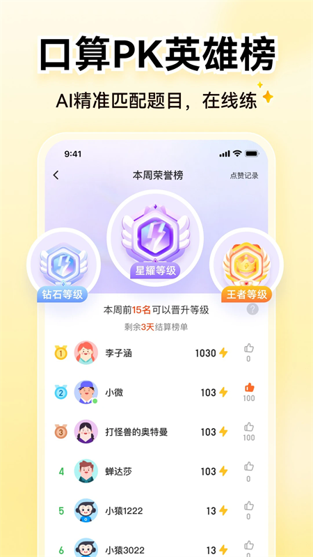 小朋友可以使用小猿口算app完成生字生词听写、古诗词背诵等家庭作业,不需要爸爸妈妈监督,养成自主学习好习惯。