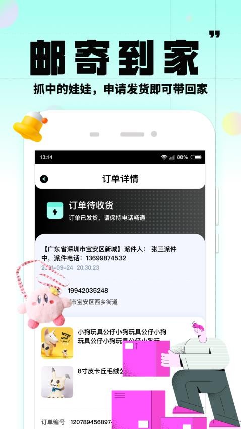 1.用户足不出户,使用手机就可以体验到日常抓娃娃的乐趣,趣味性十足