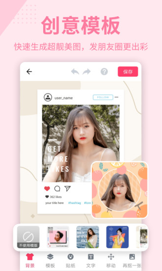保存分享:把合成的图片保存到手机相册或者分享到任何APP都非常方便。