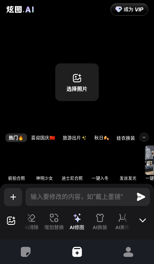 炫图ai是一款操作简单、功能强大的全新智能修图与AI生图神器。这款应用程式集成了超过100种照片风格化和数十种AI处理能力,旨在为用户提供一站式的图片编辑解决方案。让你以前所未有的效率和自由度,探索照片编辑与创作的无限可能!