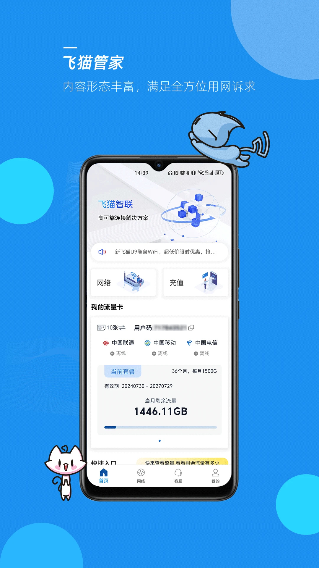 3、实时流量查看,套餐状态查询,随时随地管理网络。