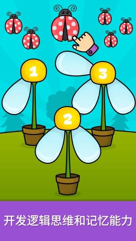 其中设有数数游戏,可按照花盆显示数字将相应数量的昆虫拖进对应的花盆中。