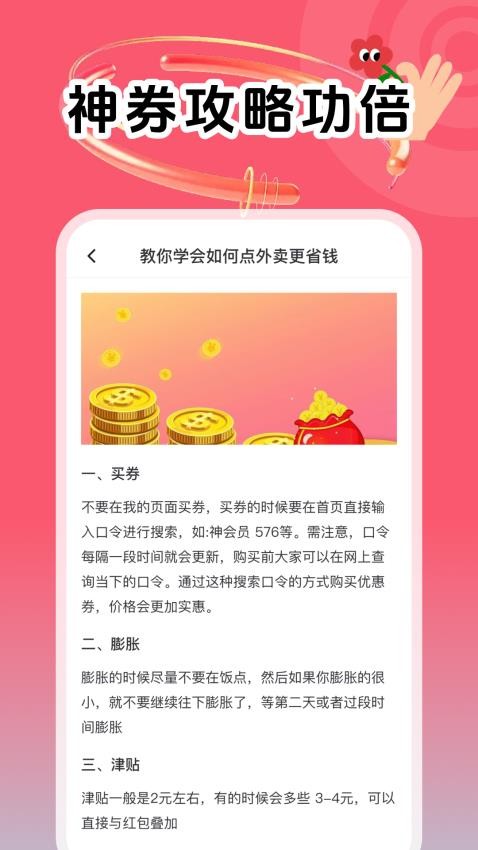 还为用户准备了许多的省钱攻略,你可以知道如何省钱,点外卖才会更实惠;