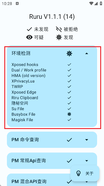 Ruru环境检测APP是一款专业的手机检测应用,帮助用户全面了解手机的各个模块运行状况。通过简单操作,您可以快速检测出手机环境中缺少的模块,并及时收到异常提醒,确保手机始终处于最佳状态。这款体积小巧但功能强大的工具,专为用户提供便捷的检测服务,解决了很多手机使用中的常见问题。
