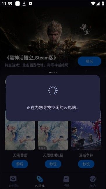 5、等待寻找空闲云电脑,请耐心等待下。