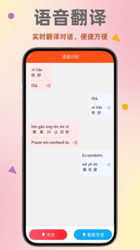 提供了语音翻译功能,可以快速的识别葡萄牙语语音并实时翻译。