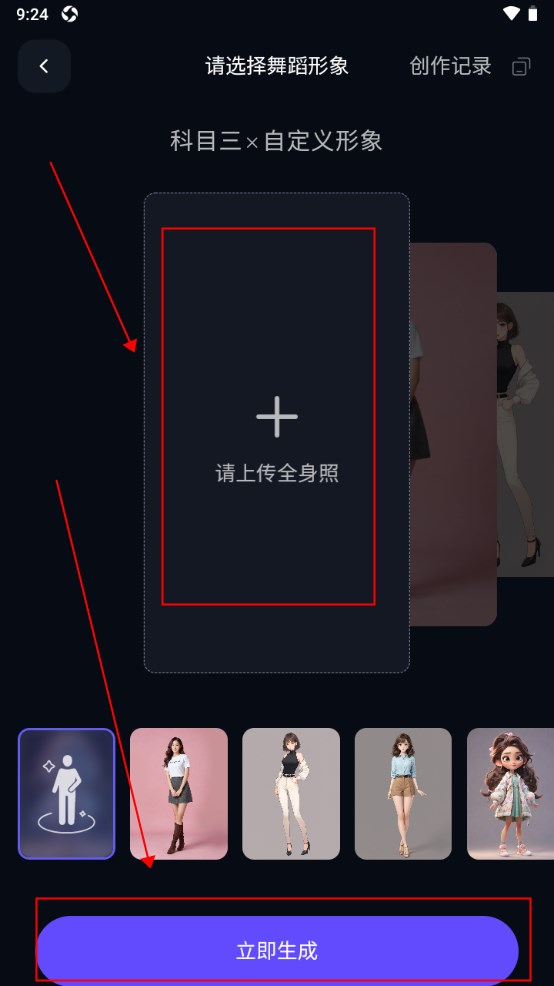上传一张全身照点击立即生成即可。