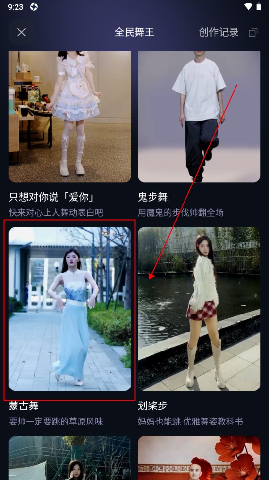 就会弹出选择舞蹈模版的界面,点击一个你喜欢的舞蹈。