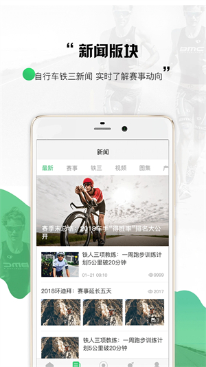 全面报道自行车、铁三赛事资讯,实时了解赛事动态。精选各大精彩赛事现场视频,足不出户,满足用户的观赛体验。