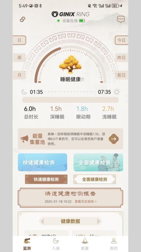 可以配合智能戒指进行健康检测,帮助用户快速的检测自己每天的各种健康数据;
