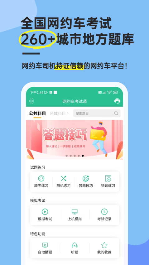 2022网约车考试通——服务全国数千万网约车司机,为全国范围内网约车学员提供网约车从业资格证考试学习的,软件内的试题包含了最新的网约车全国题库和各地区的网约车地方题库。