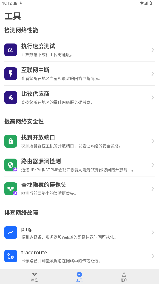Fing是一款专业的网络扫描与管理工具,可快速识别当前WiFi网络中所有连接设备,实时监控网络状态与安全风险。支持设备识别、带宽分析、端口扫描、DNS查找等多种功能。解锁高级版后,可享受广告移除、设备详细信息查看、入侵警报、自定义设备命名等高级服务,是网络管理员和家庭用户的强大助手。界面简洁,操作便捷。