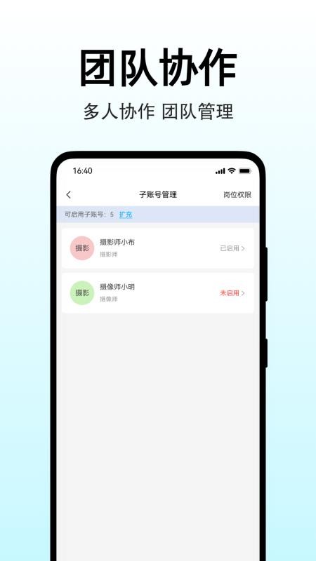 4、进行团队管理协作,可轻松在线协同办公,同时可自定义设置权限;
