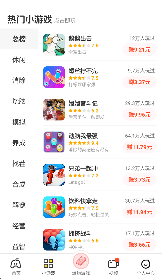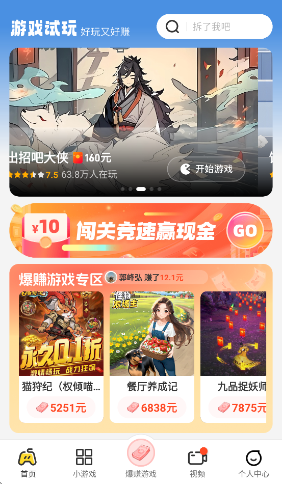 其核心模式为“边玩边赚”,游戏奖励(如红包)可累积至个人中心,并支持低门槛提现,游戏资源丰富且持续更新。