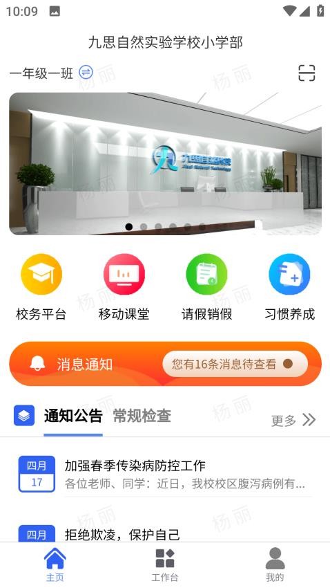 可以在班校通知中心查看到各种班级学校的通知公告内容。