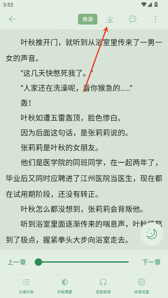 2.在阅读界面的菜单栏右上角点击下载按钮。