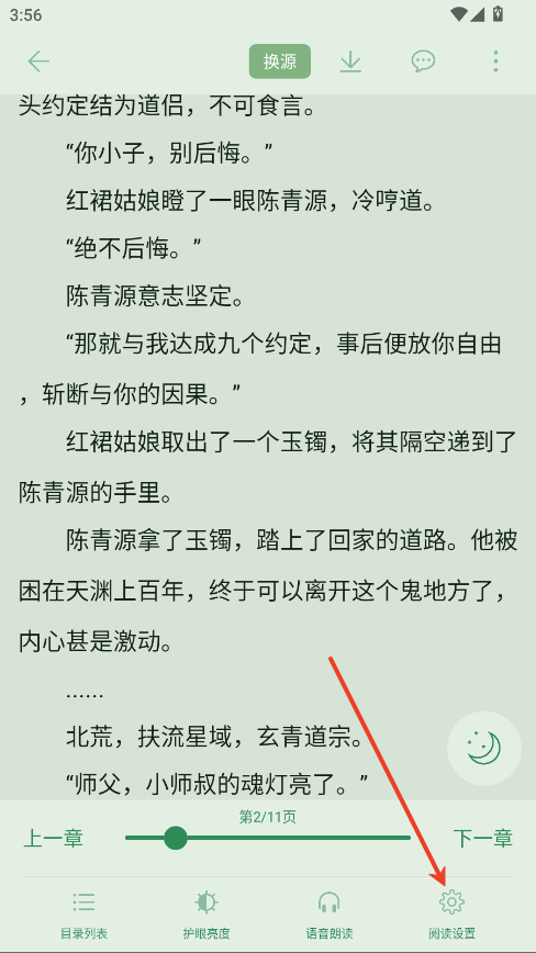 点击“免费阅读”后,进入小说的阅读界面。你可以调整字体大小、背景颜色以及亮度等,调整到最适合自己的阅读模式。