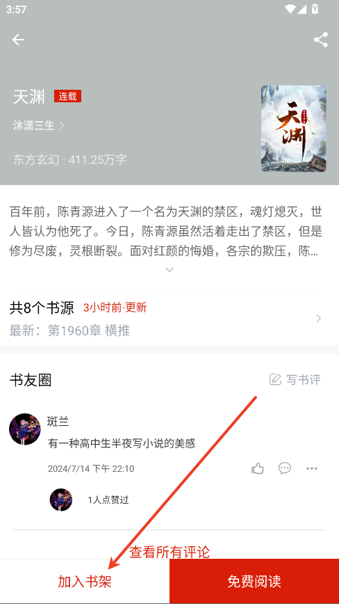 点击你喜欢的小说,进入书籍详情页面。在这个页面里,你可以查看小说简介、作者信息以及章节目录等。