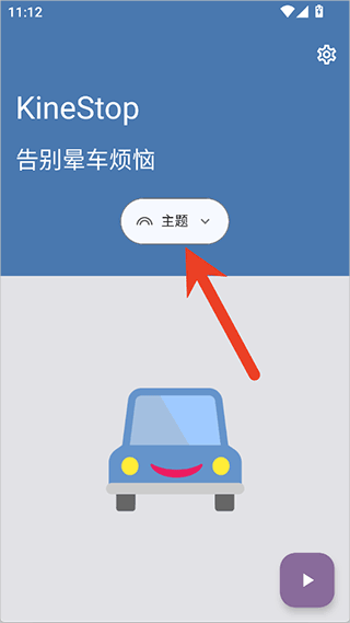 1.打开app后无需注册登录,核心的防晕车功能是免费使用的,在使用时可以先在app中点击【主题】