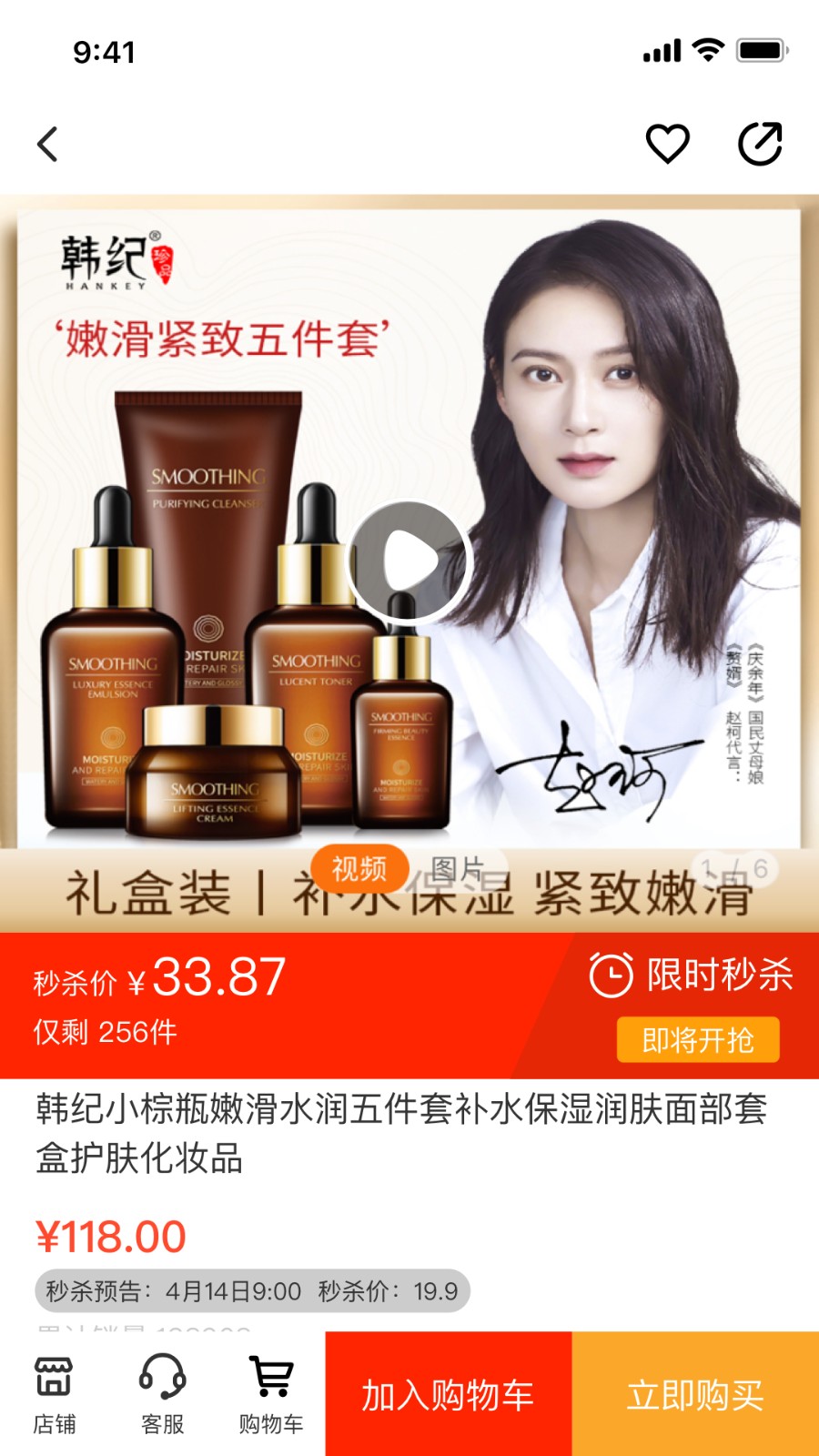 2、进入商品详情页面,点击右上角的爱心即可收藏;