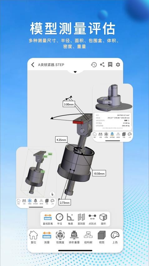提供了强大的测量功能,可以进行体积重量、包围盒、面积等测量。