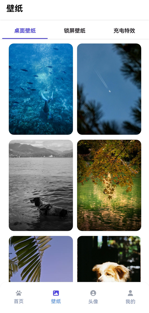 分类提供桌面壁纸、锁屏壁纸、及充电特效资源,涵盖海洋探险、自然风光、动物主题等多元场景,画质精致且动态效果细腻。