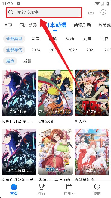 4.在搜索框中输入您想看的动漫的名字,然后从搜索结果中选择您感兴趣的动漫进行查看。