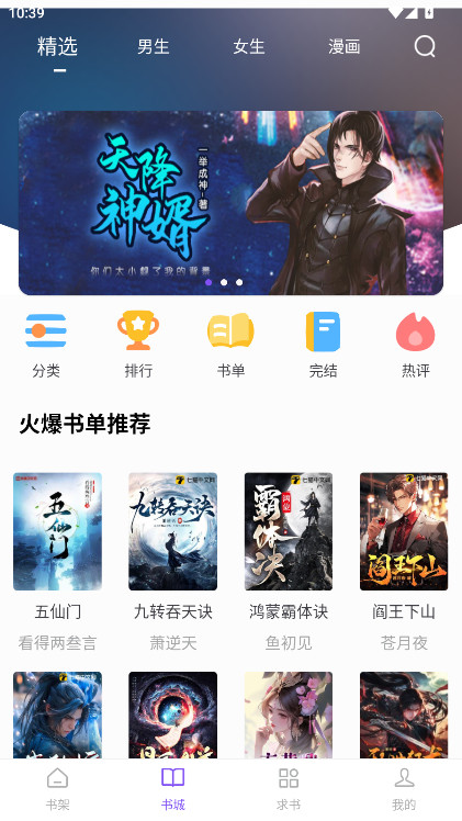 2.书城中有各种精选的小说资源推荐;