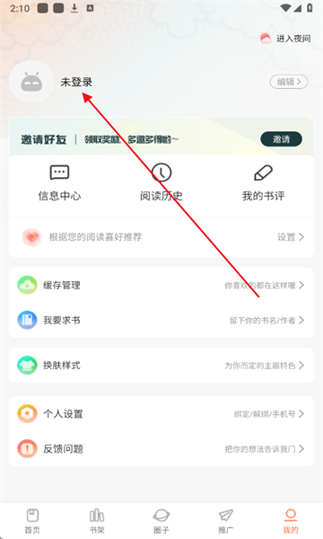 2、点击未登录