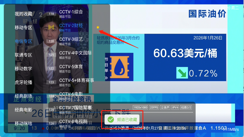 3、智能记录常看频道,贴心收藏夹功能,快速找到想要的频道。