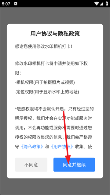 1、首先打开软件,阅读并同意《用户协议》和《隐私政策》;