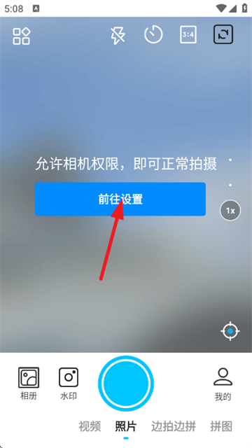 2、进入软件后,需要打开相机权限才能拍照;