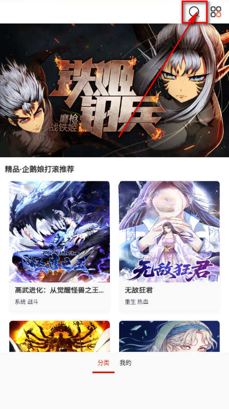 1、在本站下载安装40漫画app,打开软件,点击右上角的搜索按钮