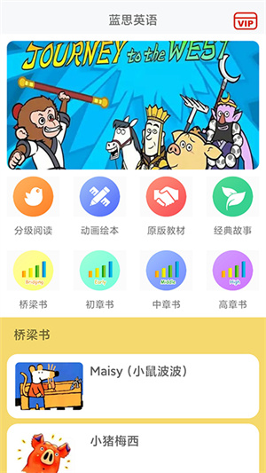 开始做分级阅读,就可以借助这个App ,这个比较有特点的是,从基础英语分级绘本,到桥梁书,再到中级、高级章节书,都涵盖了,5~12岁,甚至更大点的娃,都可以按需取用。