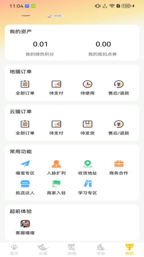 1:地猫联盟商家(全新上新平台消费券功能,支持快捷买单、团购商品);