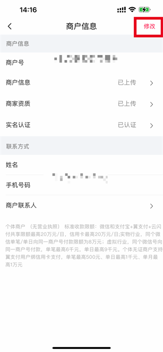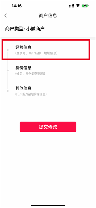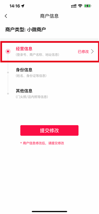 可供修改的信息为三类:经营信息、身份信息和其他信息,按照您实际需要修改的内容选择对应分类;