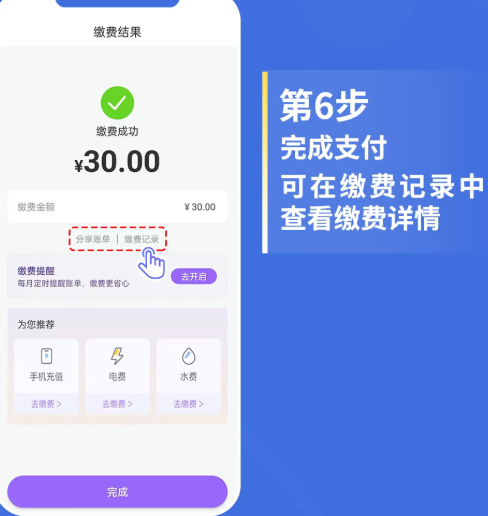 6、完成支付可在缴费记录中查看缴费详情