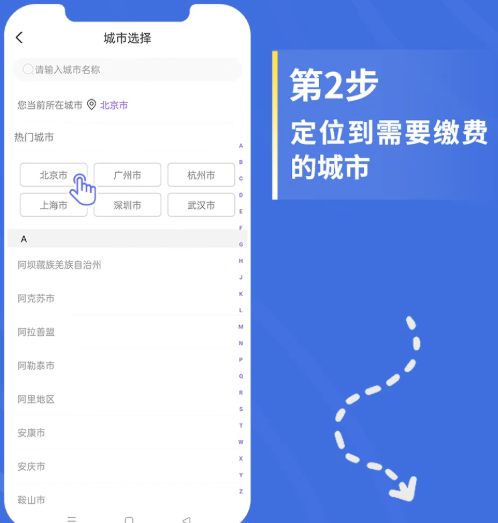 2、定位需要缴费的城市