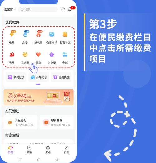 3、在便民缴费栏目中点击所需缴费项目